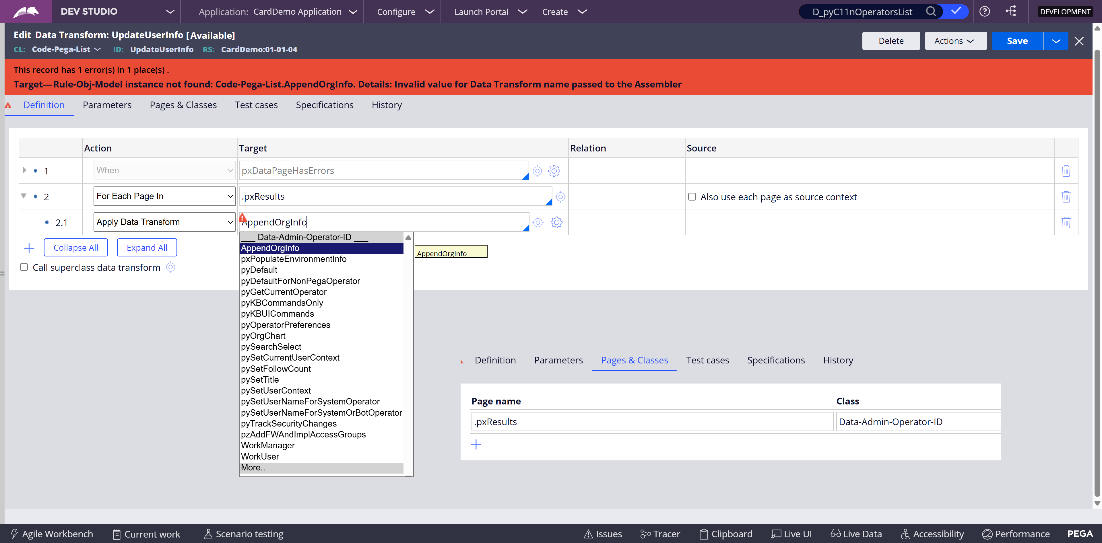 Step 3: Create post loading activity for Data page D_pyC11nOperatorsList. (this activity is needed because "Response Data transform" has design time error when saving it)