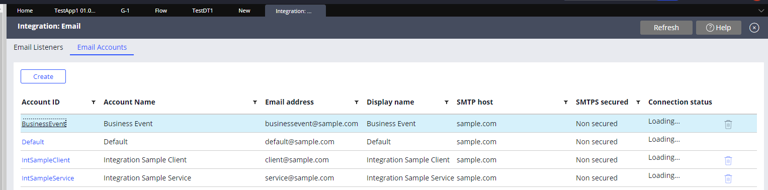 Even if I look at PegaRULES.log etc, I do not know the cause. Searching for "Sample.com" in PegaRule will show four e-mail accounts.